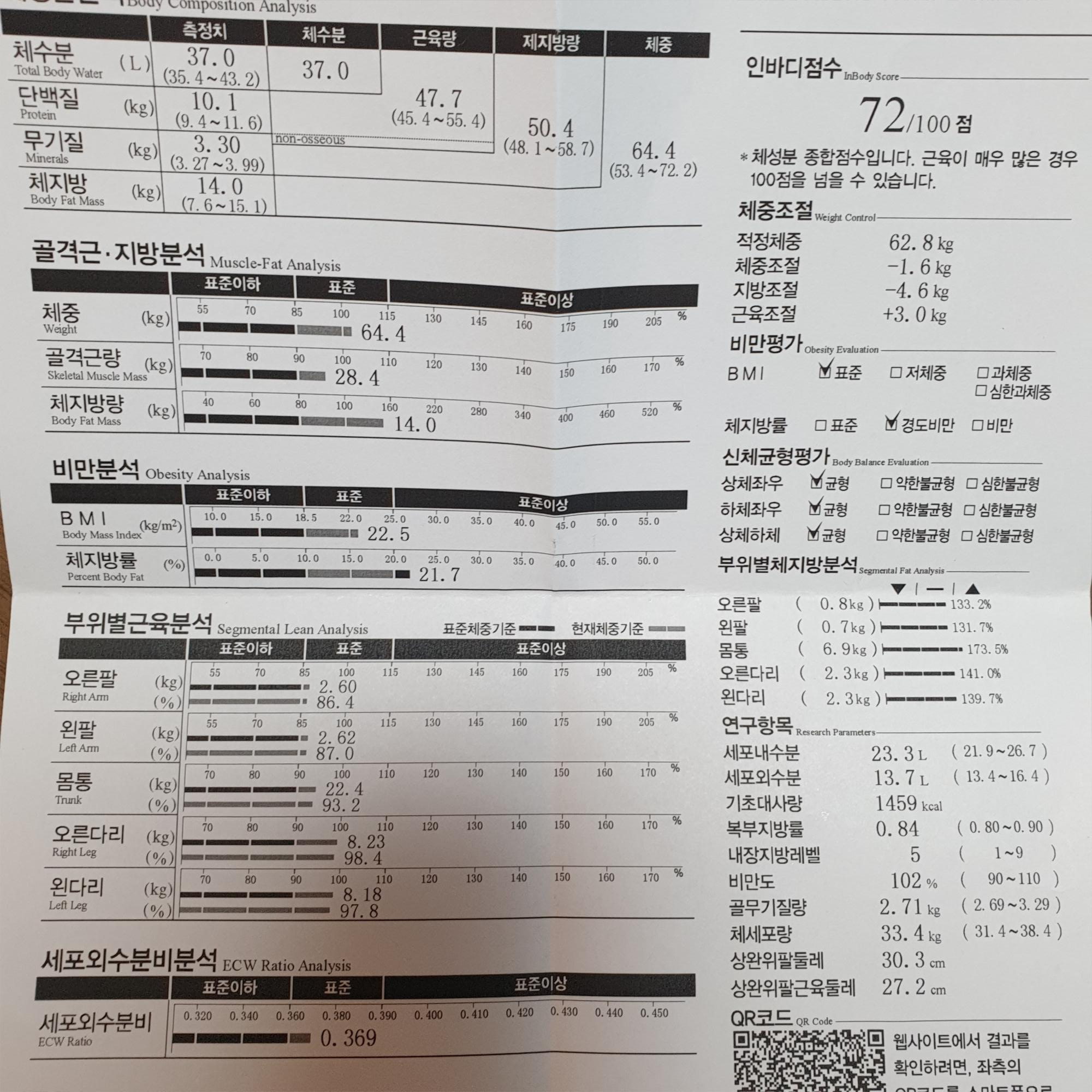 체 중 : 65.9kg → 64.4kg (1.5kg 감소)