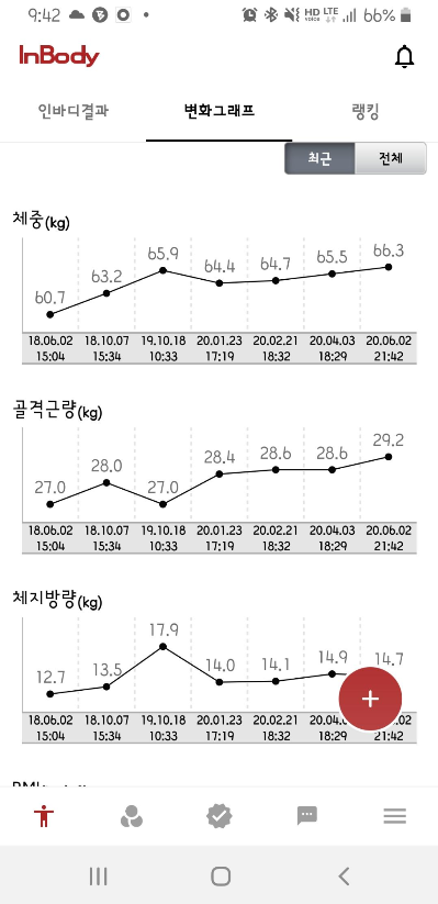 그렇게 운동방식을 바꾸고 약 5주가 흐른 뒤에 다시 인바디를 측정했다.