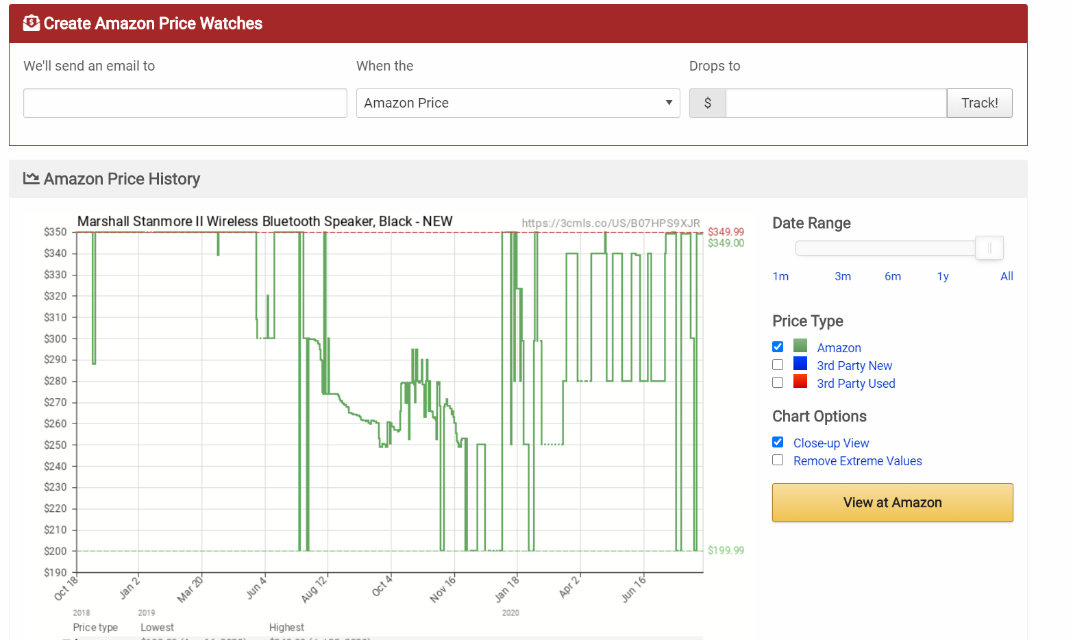 Amazon price tracker, Amazon price history charts, price watches, and price drop alerts.