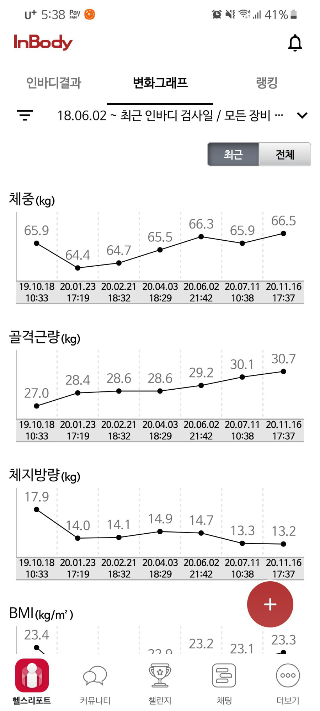 골격근량 3.7kg 증가, 체지방량 4.7kg 감소했다.